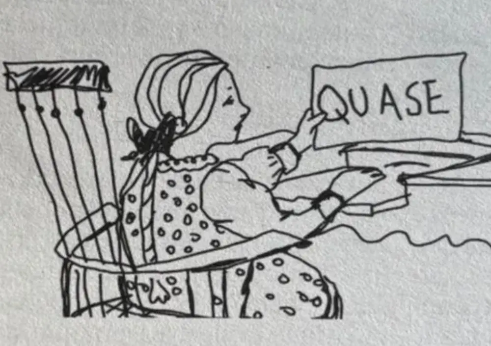 Sempre fui sucinta — até nas provas, minhas respostas eram diretas ao ponto. Desenhar começou como passatempo, depois virou obsessão: transformar pensamento em imagem. Quando percebi que podia juntar palavra e traço, meu mundo explodiu. Um desenho mínimo e uma frase curta têm o poder de condensar como um poema relâmpago. Às vezes, três linhas dizem mais que vinte parágrafos.