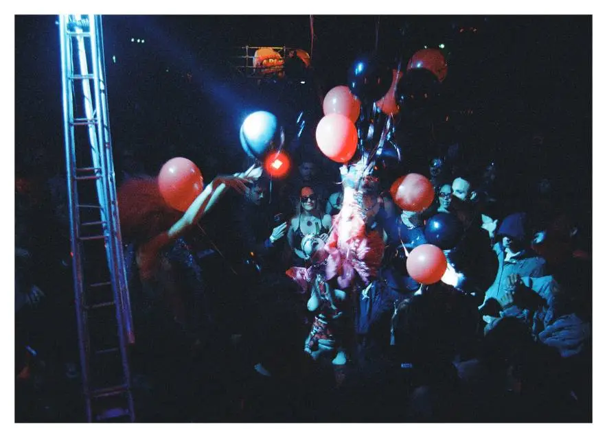 Em geral, registros de festa seguem uma linha mais documental: quem tocou, quem performou, quem foi, como era a luz, o palco, a cenografia… Eu quis propor outra narrativa e fiquei muito feliz quando percebi que a Ivi e o Ivan estavam pensando mais ou menos a mesma coisa — criar um embaralhamento proposital de imagens, tempos e sensações como se estivéssemos afirmando que, no fundo, todas essas festas são a mesma festa. Uma experiência coletiva e anônima, que poderia acontecer em qualquer lugar, em qualquer noite.